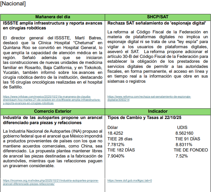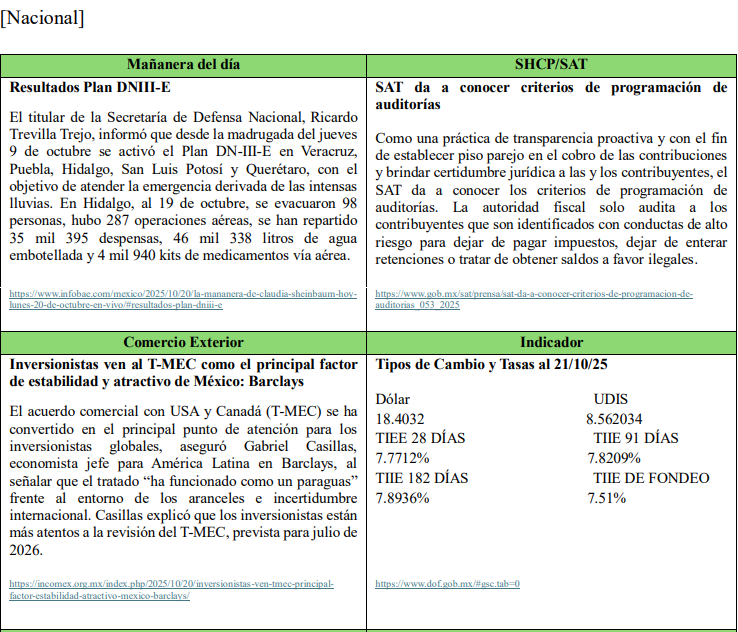 Noticias del día Miércoles 22.10.2025 Versión Español