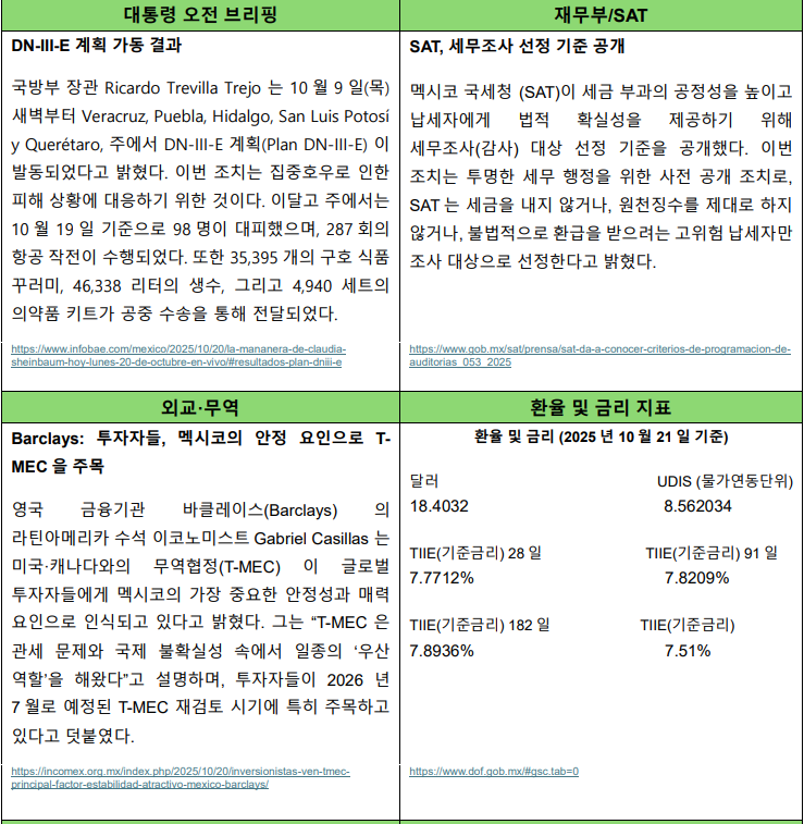 Noticias del día Martes 21.10.2025 Versión Coreano.