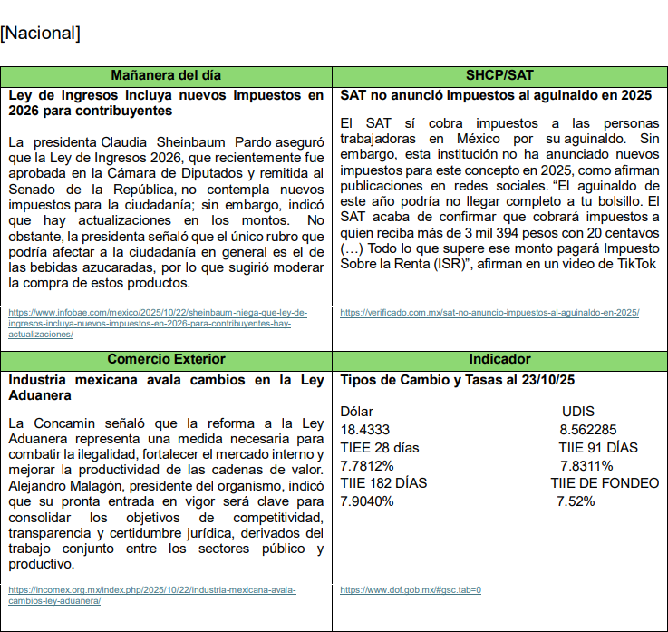 Noticias del día de Jueves 23.10.2025 Versión Español.