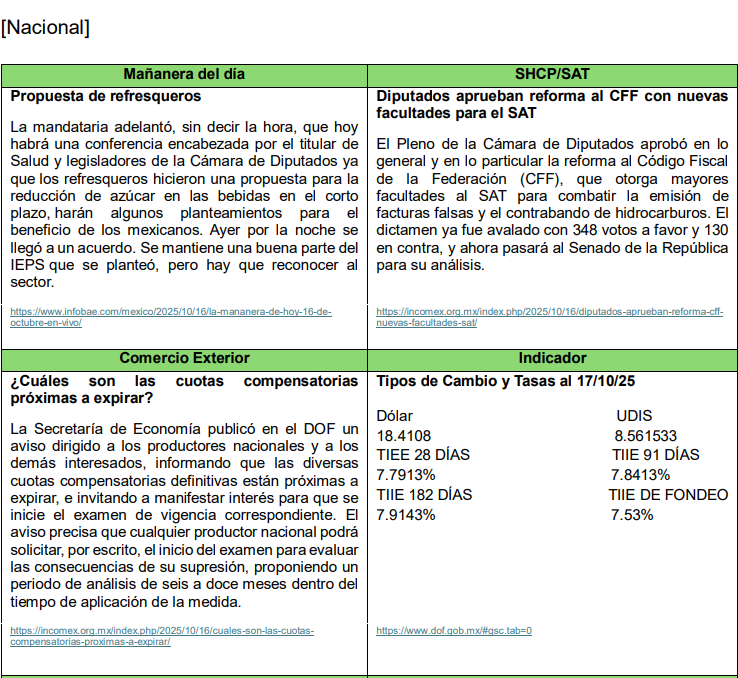Noticias del día Viernes 17.10.2025 Versión Español.