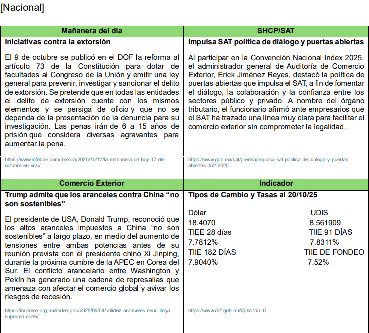 Noticias del día Lunes 20.10.2025 Versión Español.