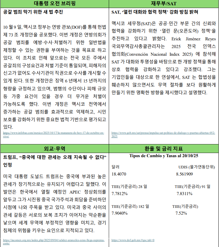 Noticias del día Lunes 20.10.2025 Versión Coreano.