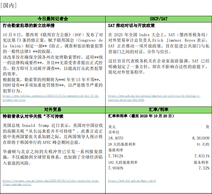 Noticias del día Lunes 20.10.2025 Versión Chino.
