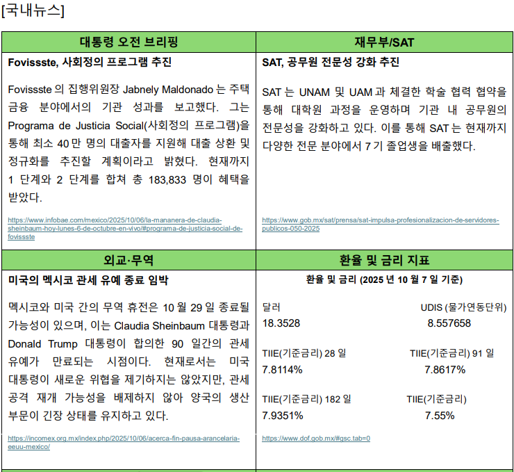 Noticias del día Lunes 07.10. 2025 Versión Coreano.