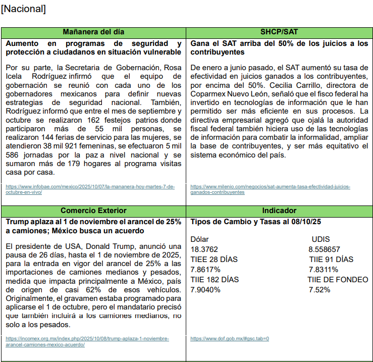 Noticias del día Miércoles 08.10.2025 Versión Español