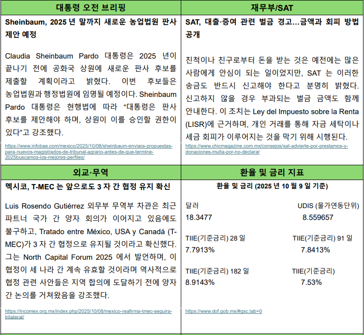 Noticias del día Jueves 09.10. 2025 Versión Coreano.