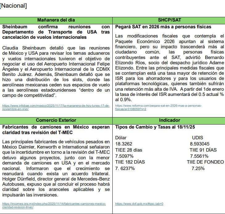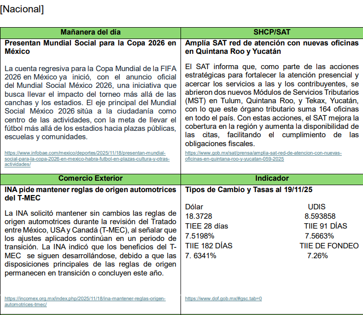 Noticias del día Miércoles 19.11.2025 Versión Español