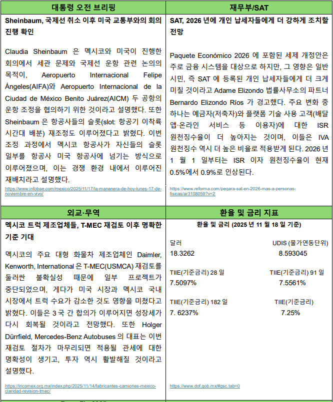 Noticias del día Martes 18.11.2025 Versión Coreano.
